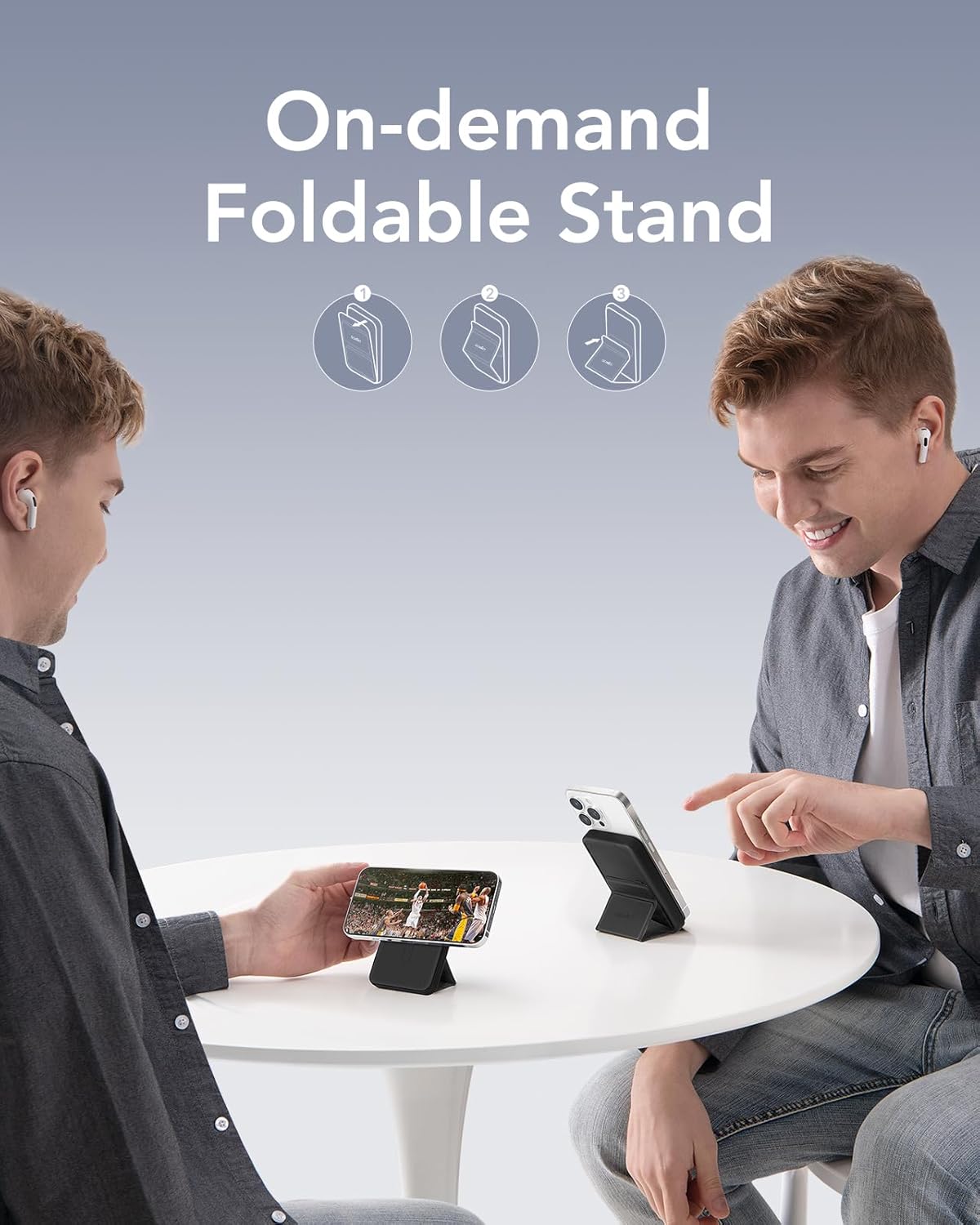 The power bank is 100% compatible with MagSafe. Charging your phone is only by a snap. When you watch a movie or make a video call, the built-in foldable stand can offer a comfortable viewing angle and a hands-free experience.