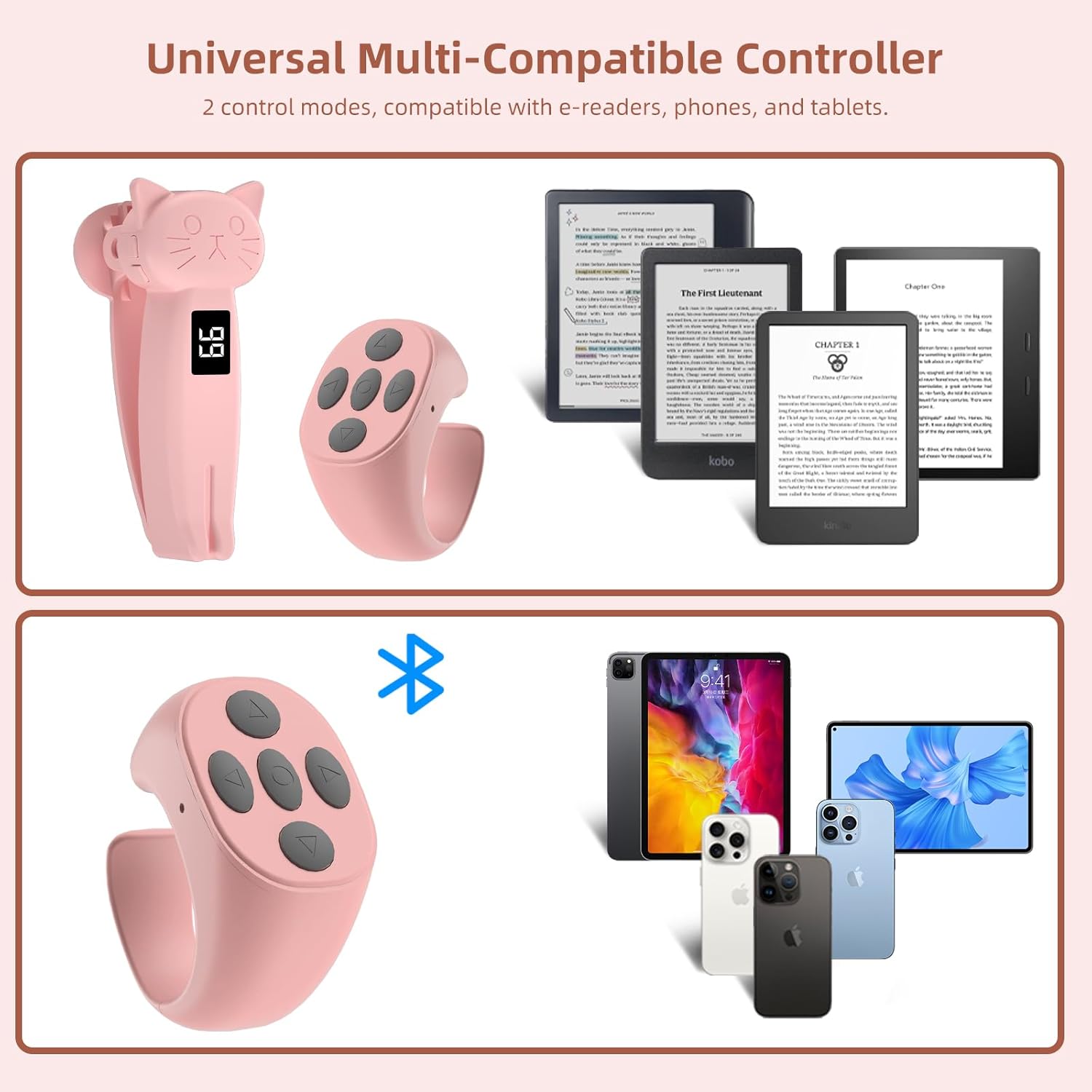 Remote Control Page Turner for Kindle Paperwhite Oasis Kobo Accessories Reading Novels & eReaders Camera with Video Recording Remote Triggers Page Turner Clicker for iPad Android Tablets (Pink)