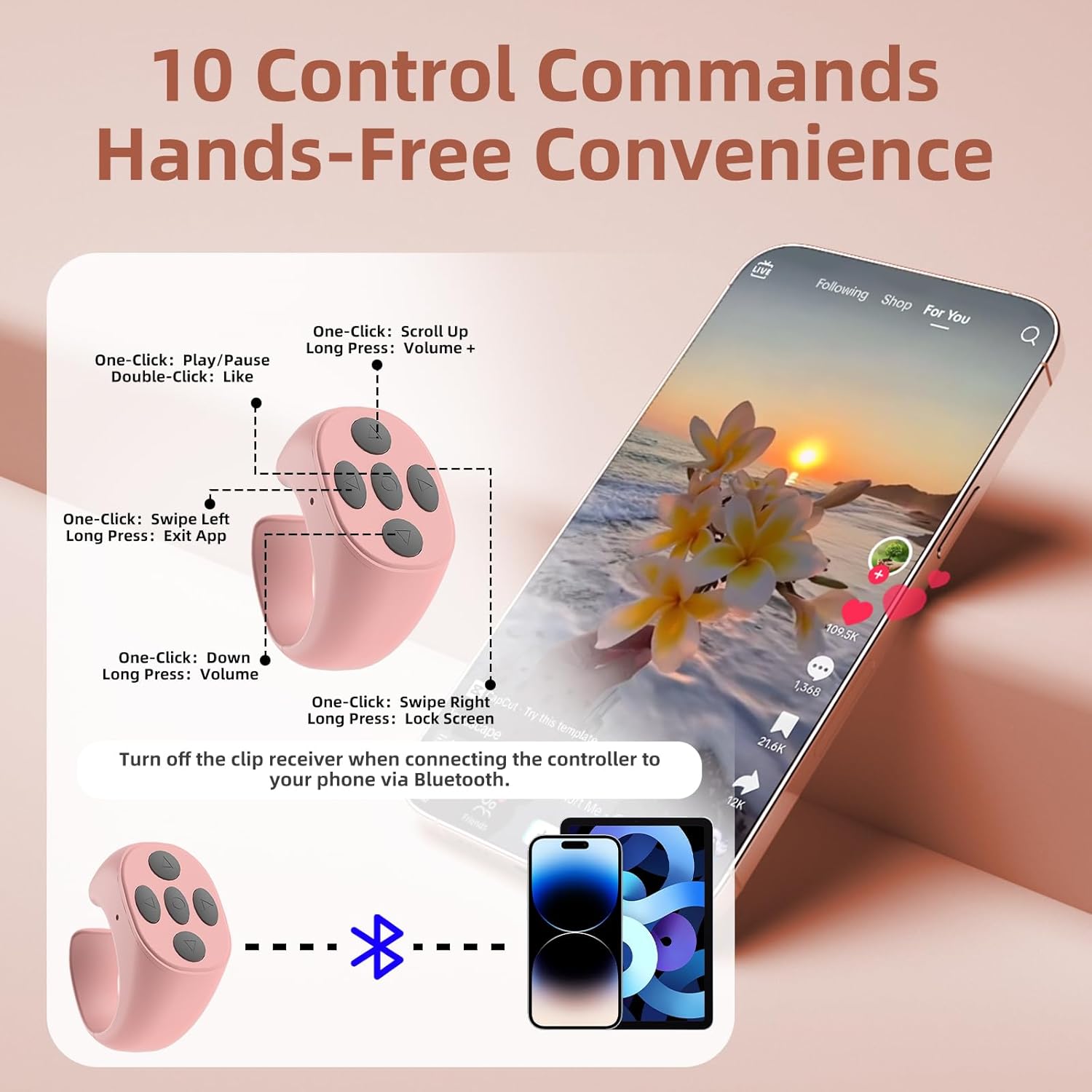 Wireless Remote Control: Ditimlci remote controller page turner can be used as a camera and video remote control for smartphones. Clip the page turner on the shooting shutter, whether for remotely taking selfies or remotely grouping photos, this remote button effortlessly handles it, solving the dilemma of taking outdoor photos without assistance