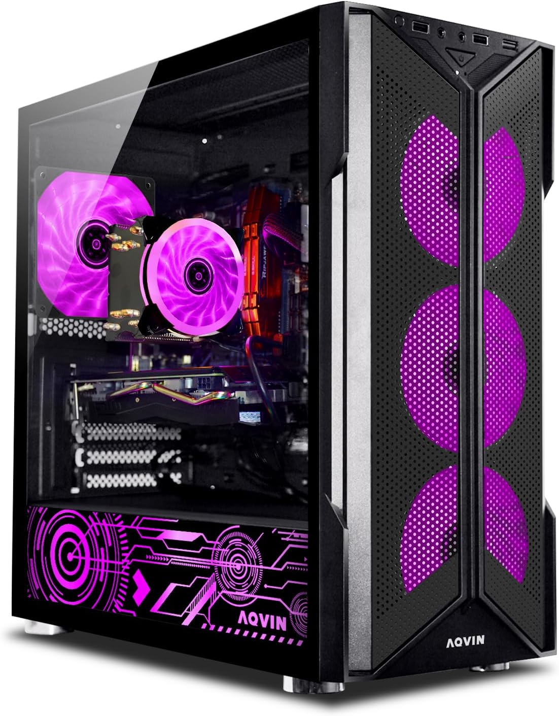 PACKAGE INCLUDED: Includes AQVIN Gaming Tower, USB Gaming RGB Keyboard and Mouse designed specifically for gaming.