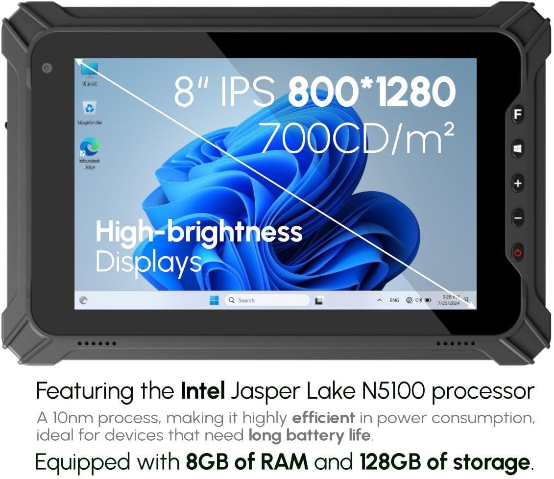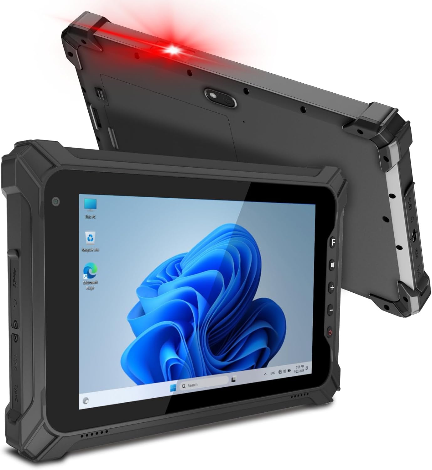 Rugged Windows11 Tablet with Barcode Scanner, 8″ IP65 Enterprise Inventory Tablet Equip with N4680 Scan Engine 1D 2D Barcode Scanning, NFC Reader, 4G WiFi Pad Scanner for WMS ERP