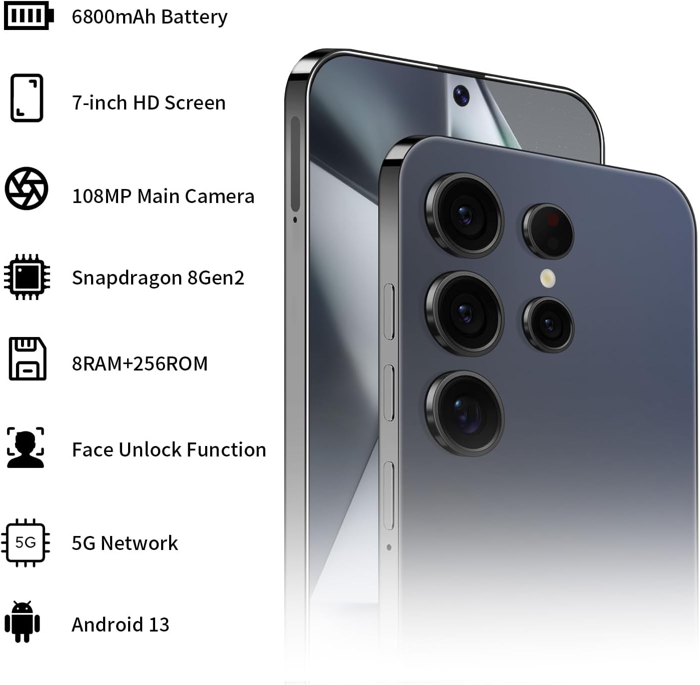 S24 Ultra Unlocked Phone 8GB+256GB Android Cell Phone 7 inch HD Screen Mobile Phone 108MP+48MP Camera 6800 mAh Extra Large Battery 5G Dual SIM (Titanium Deep Blue)