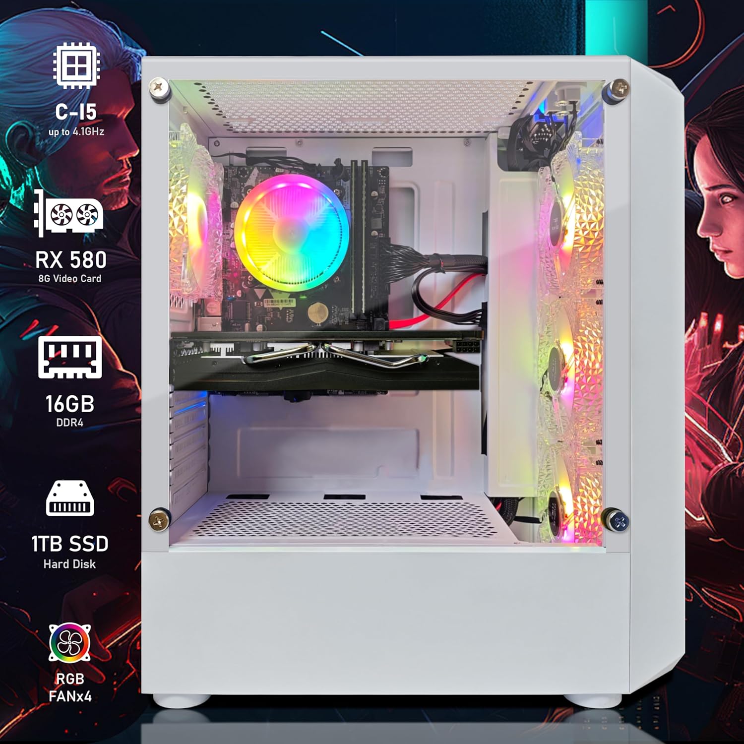 8 reviews for STGAubron Gaming PC Desktop, Radeon RX 580 8G GDDR5, Intel Core i5-9400F up to 4.1GHz, 16G DDR4 Memory, 1T SSD, 600M WiFi, BT 5.0, RGB Fan x 4, RGB Mouse Pad, Windows 11 Home