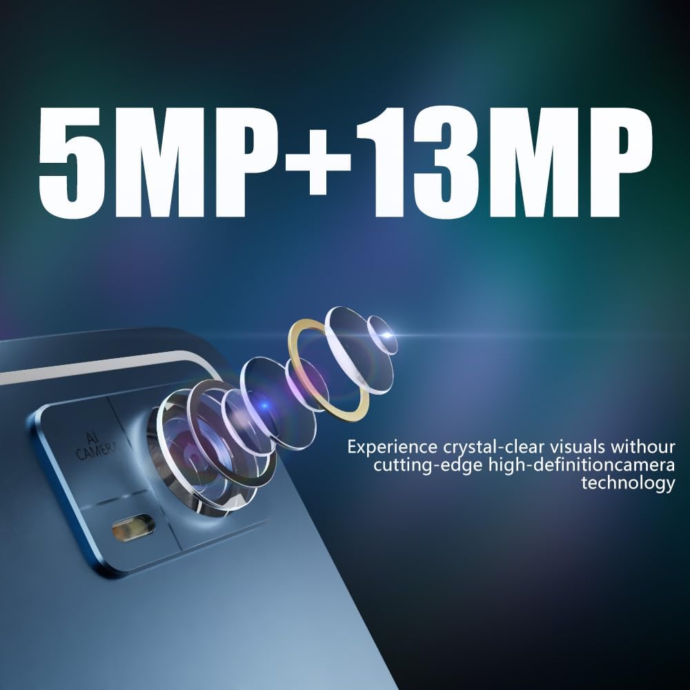 Perfect for Video Calls and Media: Dual Cameras and Quad Speakers” Experience crystal-clear video calls and immersive audio with our tablet featuring a dual-camera setup (5MP + 13MP) and quad speakers.