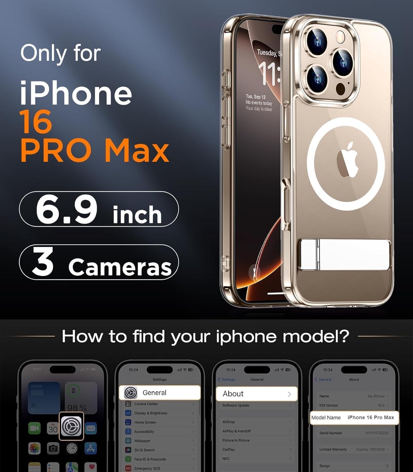 8 reviews for Temdan Magnetic Compatible with iPhone 16 Pro Max Case, [Built-in Invisible Kickstand][Compatible with MagSafe] [Military Grade Shockproof] Slim Thin Phone Case for iPhone 16 Pro Max 6.9″