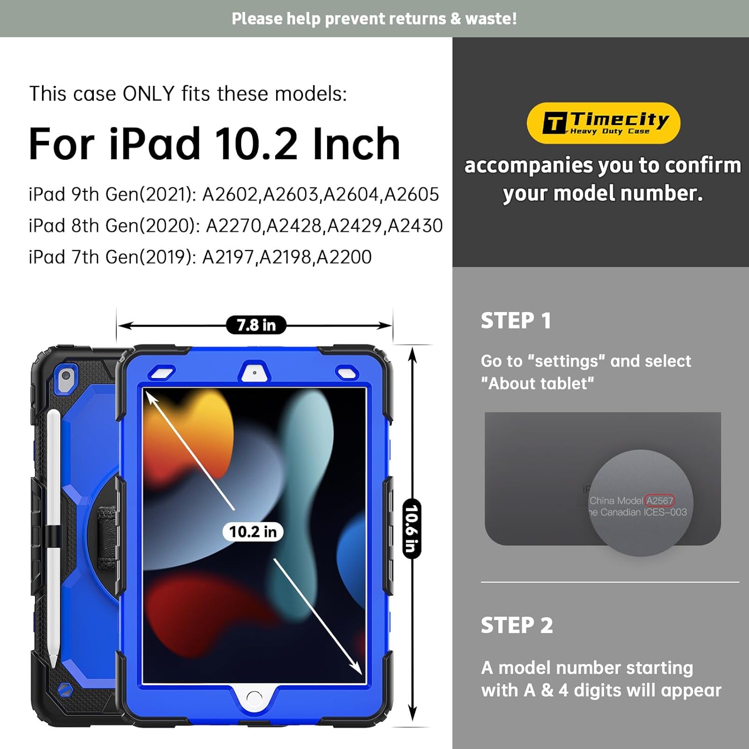 Customized Design — Specially designed for the iPad 9th/ 8th/ 7th Gen, size, proportion, and hole positions, which are one to one correspondence. This protective case provides strong protection and functions for the iPad, while meeting the charging, photography, and volume adjustment of iPad. (Remarks, not suitable for other models iPad, If you have other models of case requirements, please go to (https://www.amazon.com/timecity) to find the corresponding model case.)