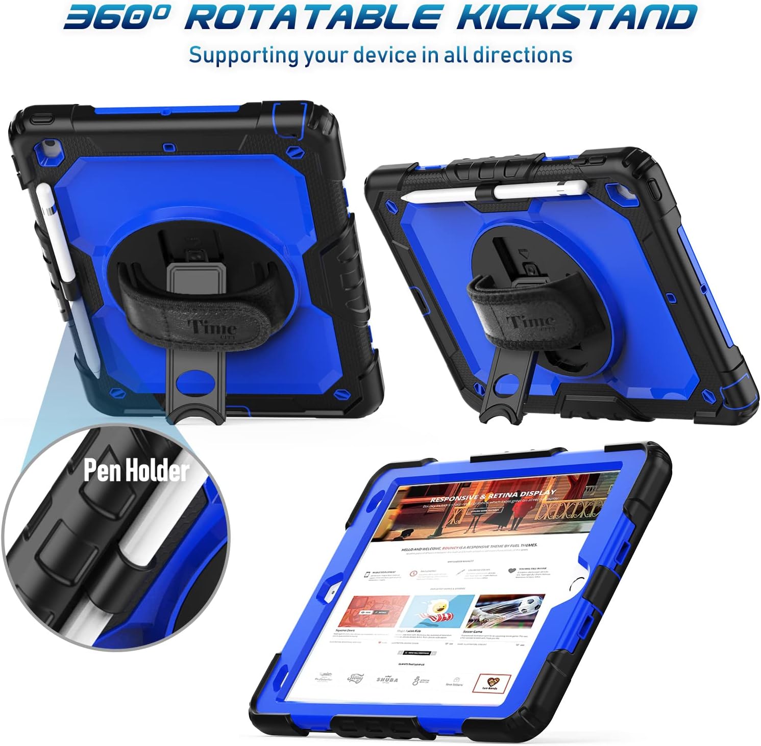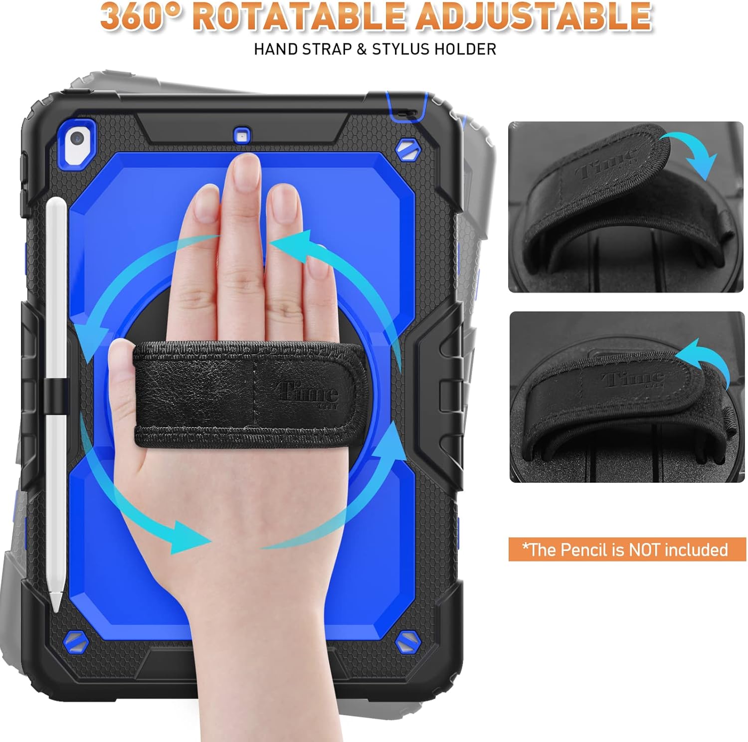 Timecity Case for iPad 9th/ 8th/ 7th Generation 10.2 inch (Case for iPad 9/8/ 7 Gen): with Strong Protection, Screen Protector, Hand/Shoulder Strap, Rotating Stand, Pencil Holder – Dark Blue
