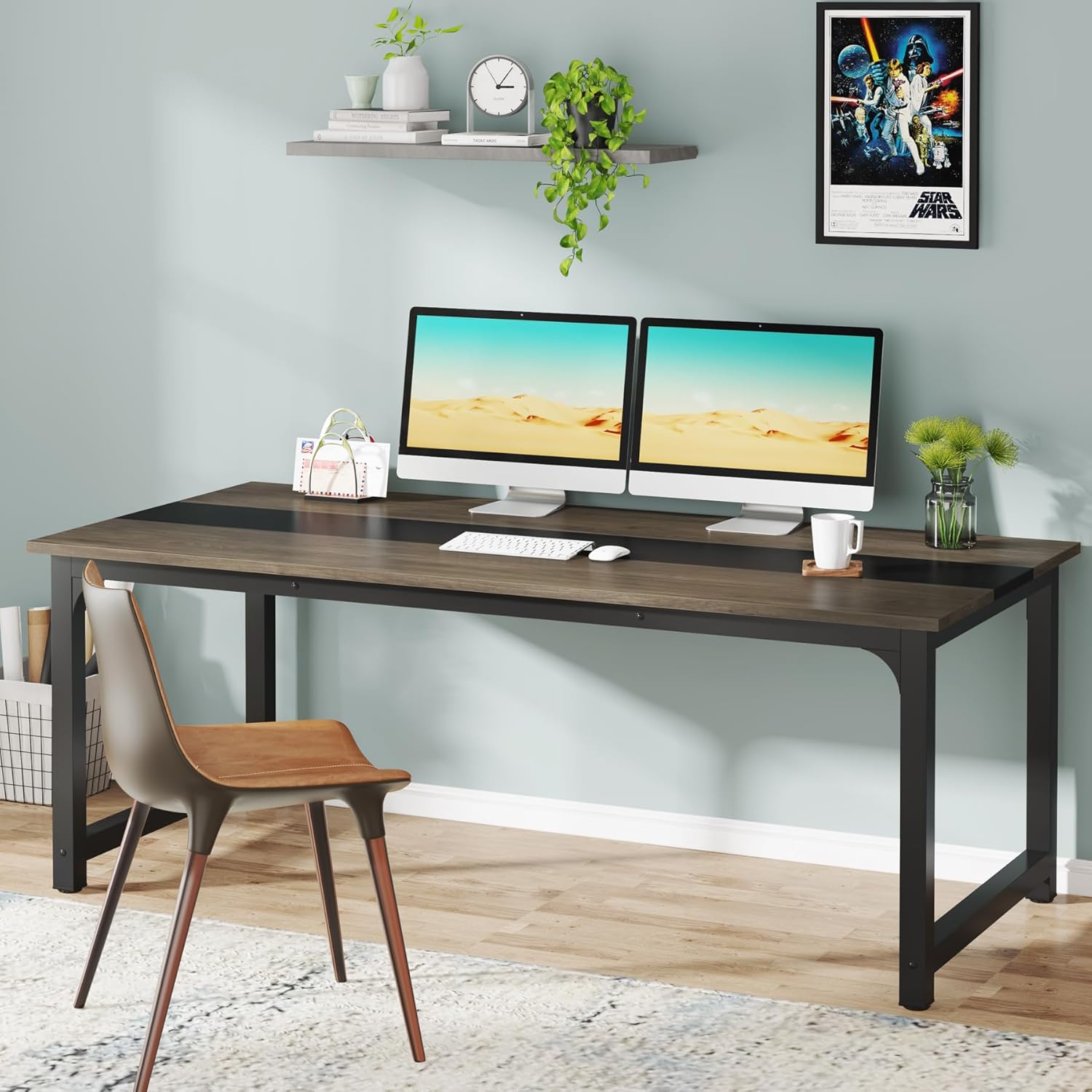 Tribesigns Modern Computer Desk, 70.8 x 31.5 inch Large Office Desk Computer Table Study Writing Desk Workstation for Home Office, Grey/Black