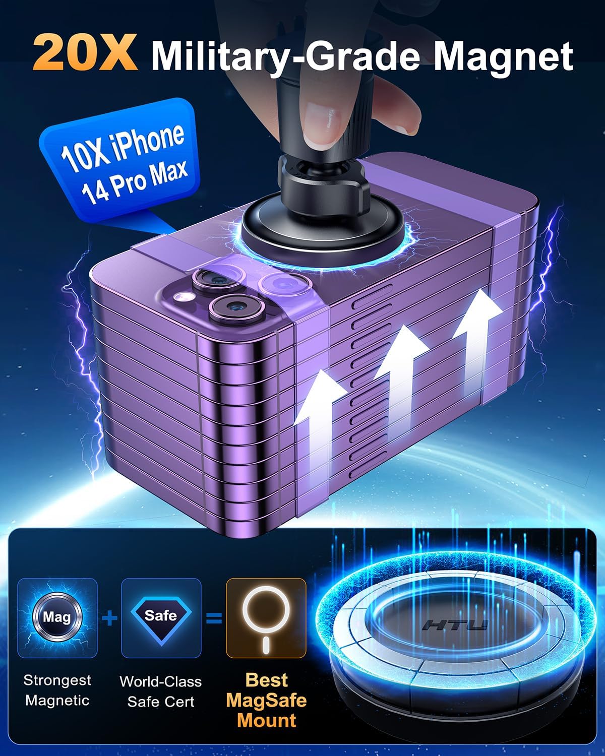 [2025 Strongest Magnet for Your Security] Equipped with 20 N55 military-grade magnets, which are powerful enough to hold 10 units of iPhone 15 Pro Max! It ensures your device stays firmly secured on the mount, even at 194°F or during bumpy roads.