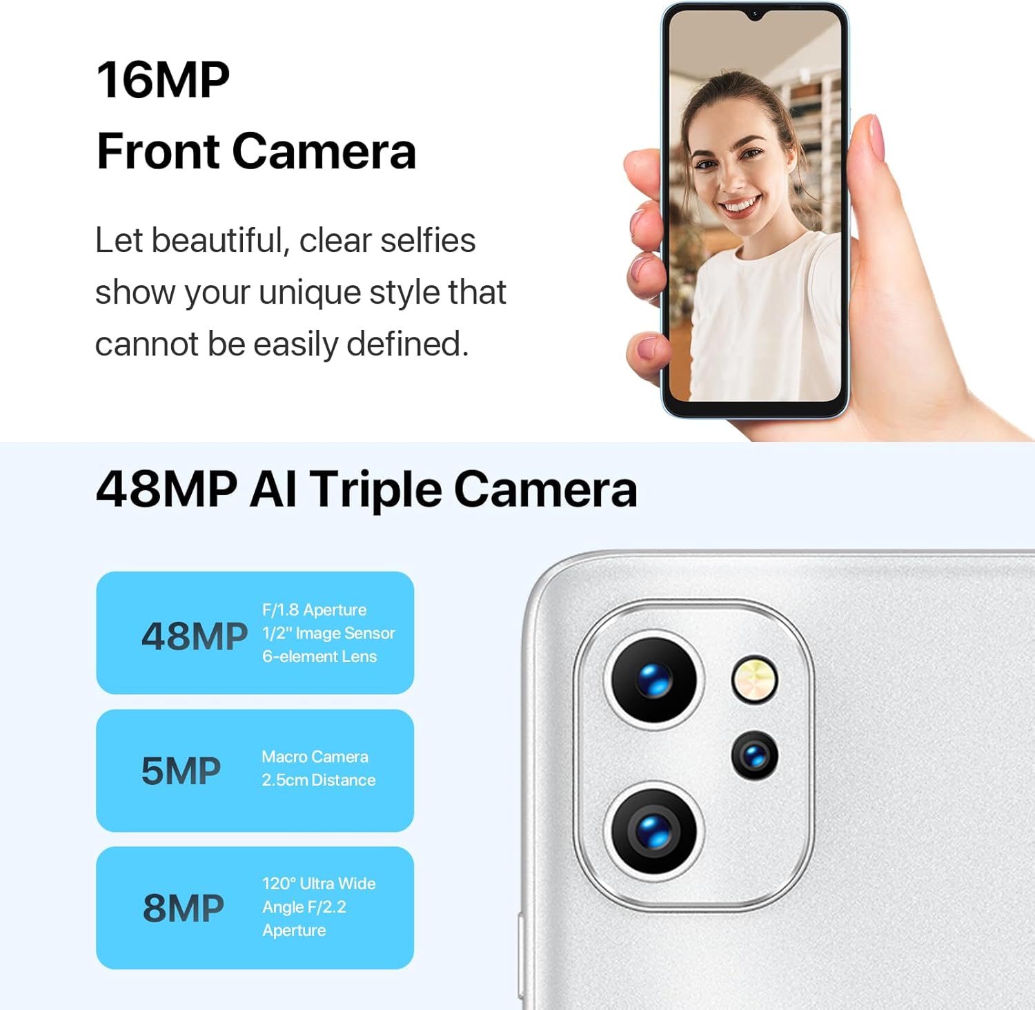 48MP Main Camera + 16MP Front Camera: F3 5G equipped with Sony 48MP AI triple camera brings more details to accomplish your creativity, super clear main camera, 16MP front beauty, 5MP macro, super night mode, giving you better shooting experience.