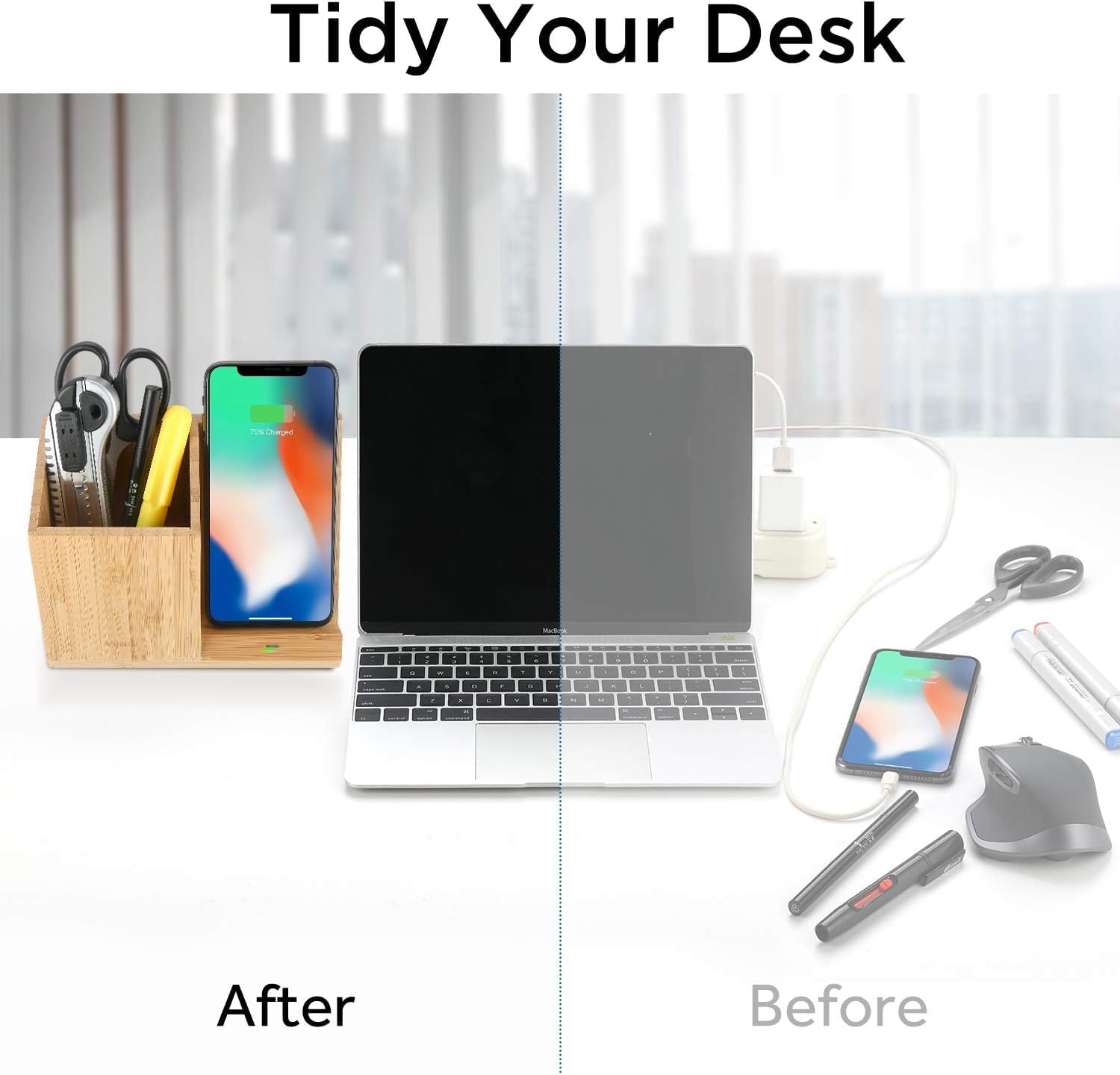 Clutter-free : No need to plug in your phone. Simply place your Qi-compatible device on it and let charging begain ,Organize small items such as pen, ruler, scissors on your desktop and avoid messes