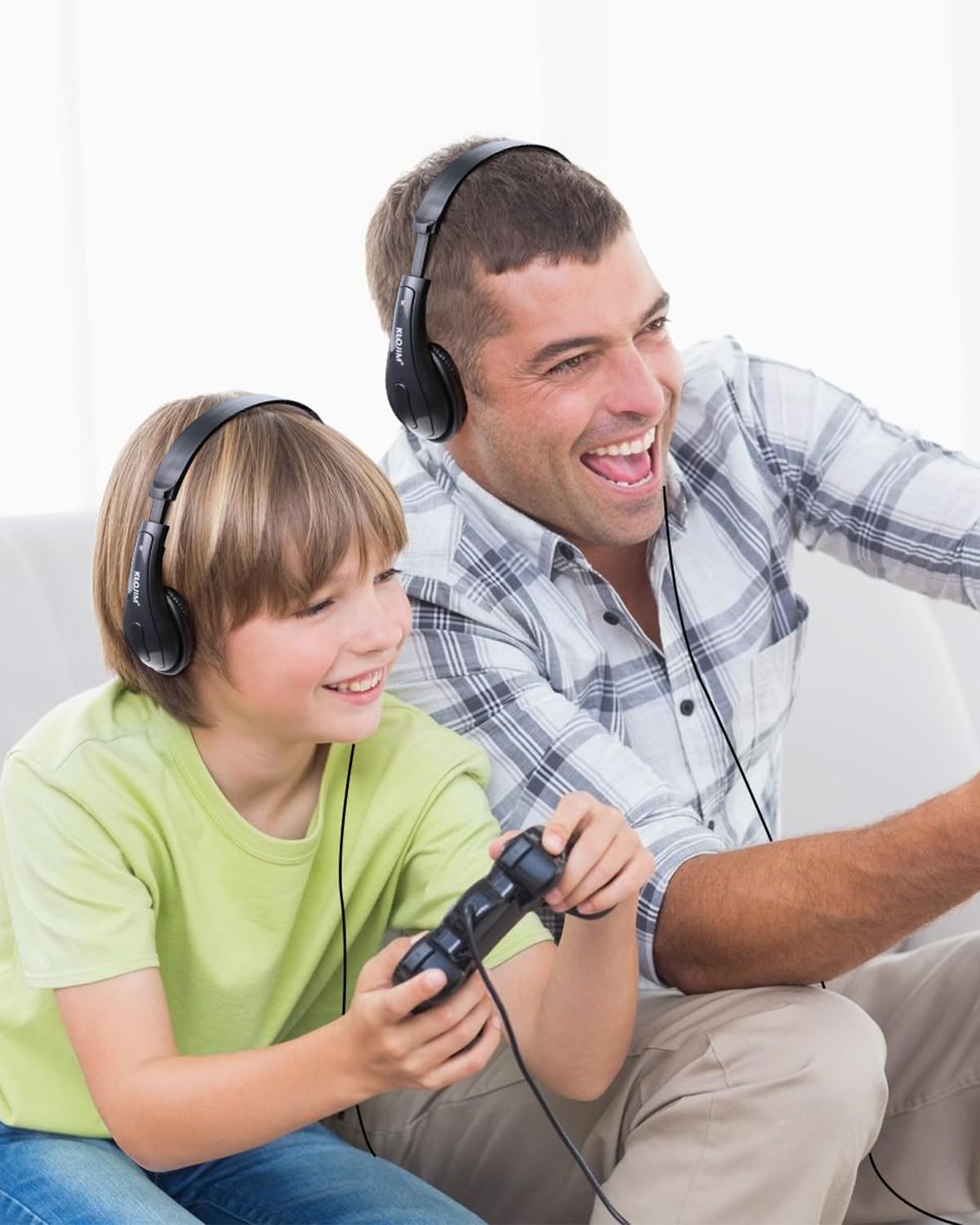 ✅ALL DAY COMFORT & ADJUSTABLE – The protein leatherette ear cups and memory foam lining of these headphones wired provide a soft and comfortable fit, they are designed for all-day comfort using, there will be no restraint pressure, even during long listening sessions. The adjustable headbend fit adult and kids easily.