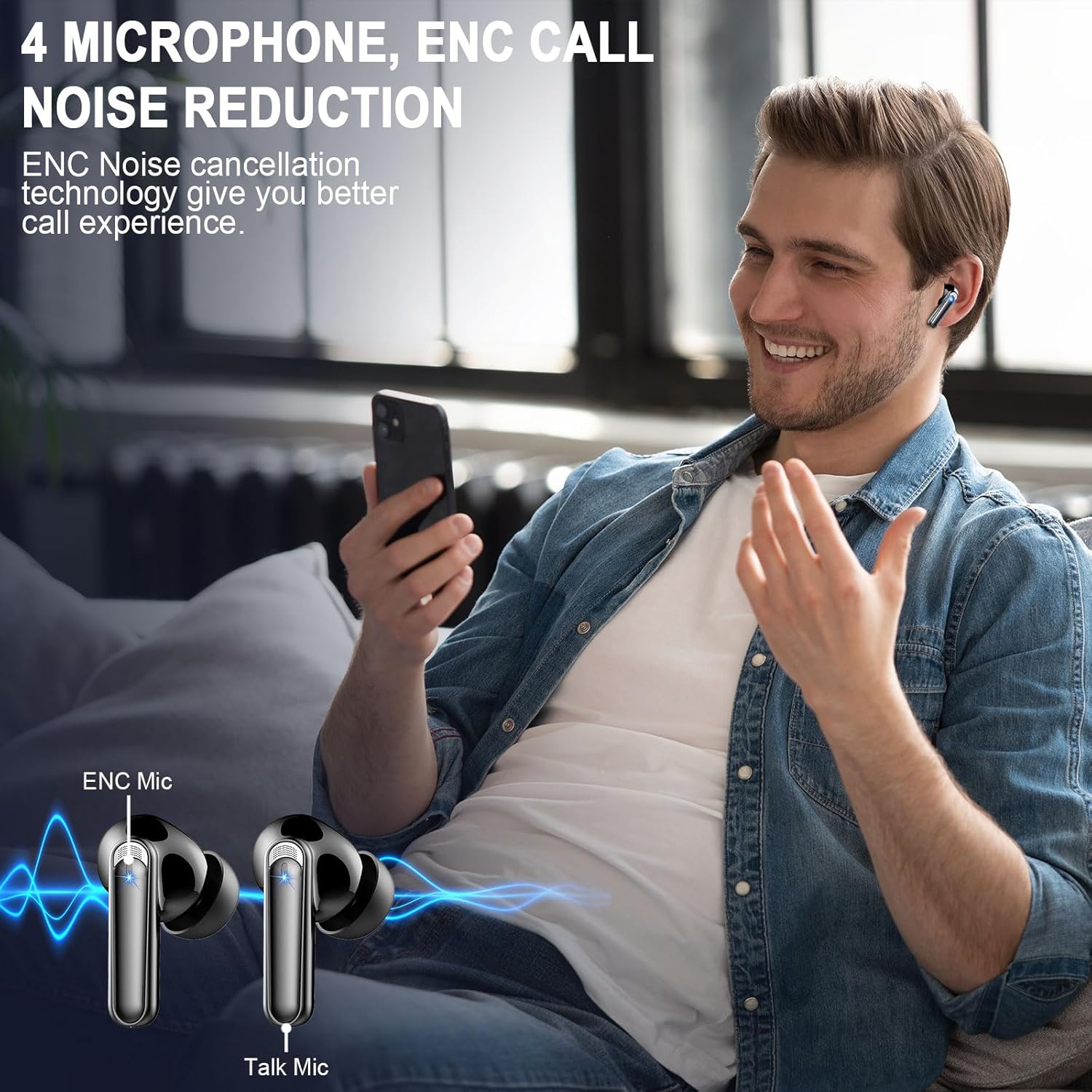13 reviews for Wireless Earbuds, Bluetooth 5.3 Headphones, Ear Buds Wireless Earbuds Bluetooth with 4 ENC Noise Cancelling Mic, 48H Playtime Stereo, LED Power Display, IP7 Waterproof Wireless Earphones, Deep Black