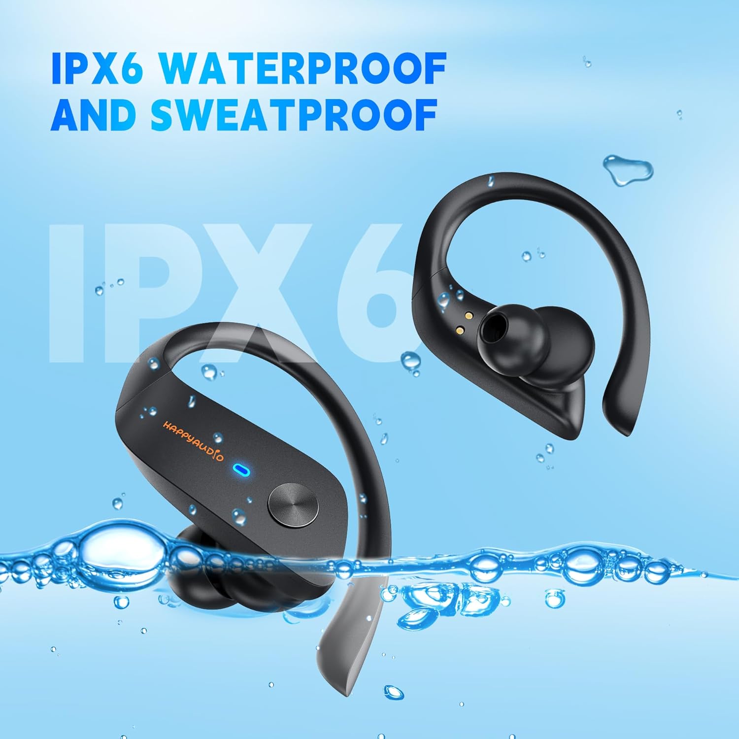 Bluetooth Wireless Headphones- They are designed for comfort and convenience. Soft ear cushions and ear hooks ensure a secure fit and ensure stability and comfort, while IPX6 waterproof and sweatproof properties make it perfect for any sport or gym. You can enjoy your music while exercising.