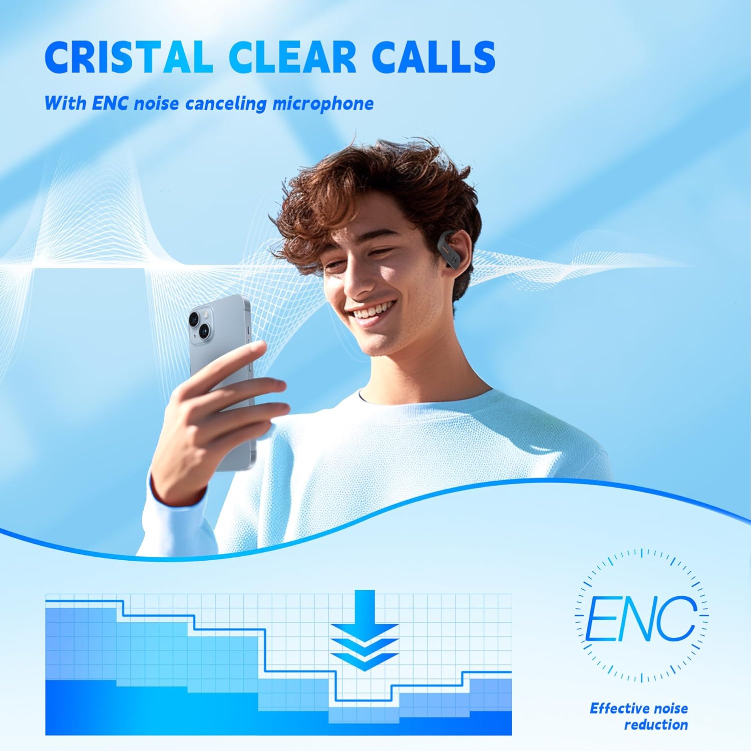 Clear Call- wireless headphones noise cancelling With ENC noise cancelling microphone, it filters out background noise and ensures your voice is heard loud and clear. It can solve your calling problems when you exercise outdoors
