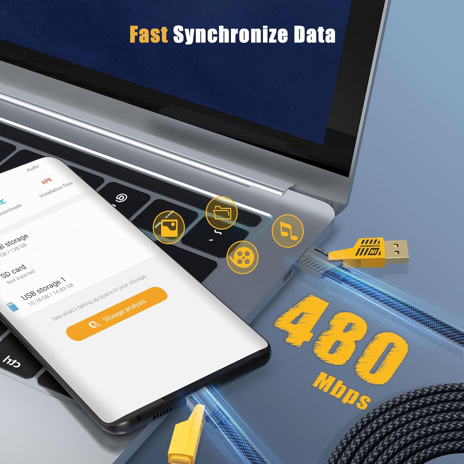 High-Speed Data Transfer: Enjoy lightning-fast data transfer speeds of up to 480Mbps. The USB data cable supports rapid file, document, movie, music, and photo transfers and synchronization. Transfer a 1G file in just 30 seconds, eliminating slow transfer times. (Video/media output not supported).