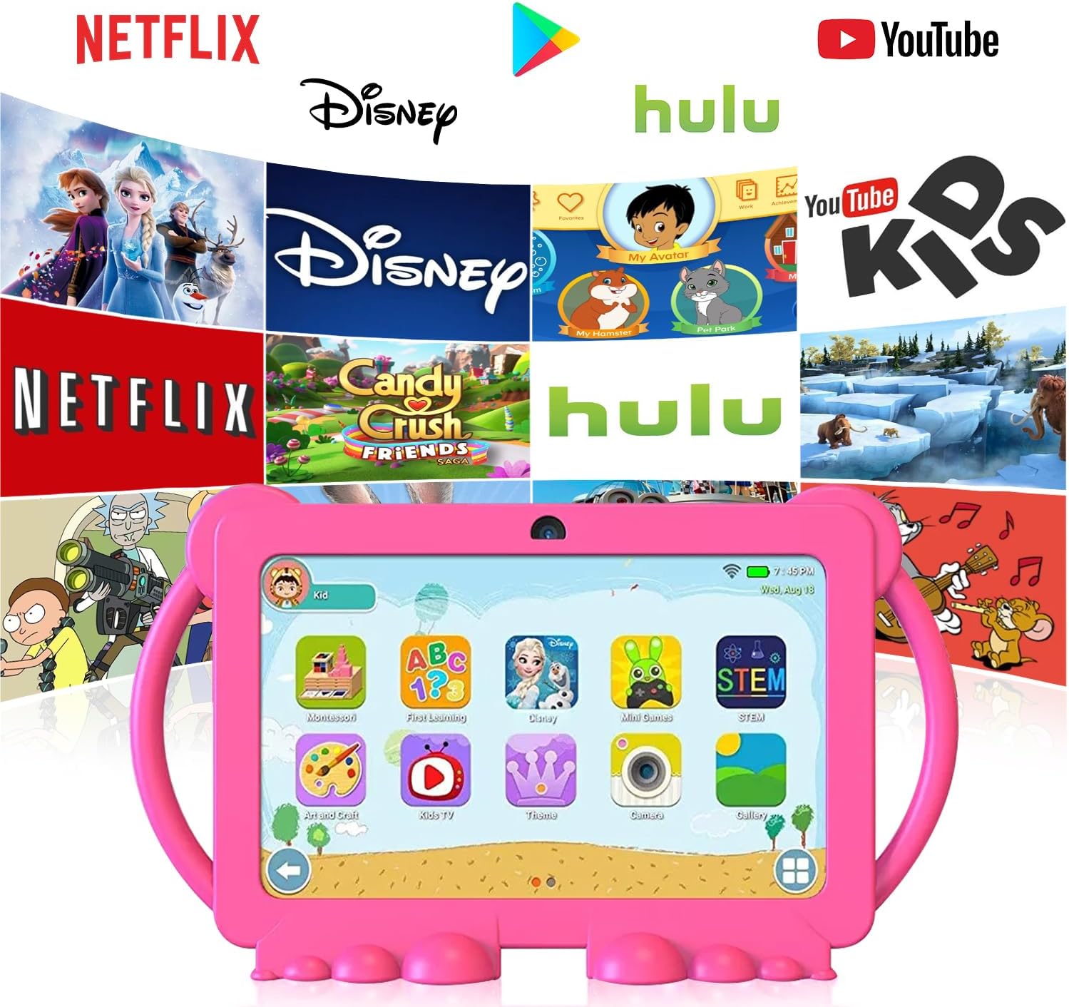 【Pre-installed Educational Apps】The 7 inch Kids Tablet comes pre-installed with iWaWa apps that are specifically designed to help children learn and develop, and are suitable for children aged 3+