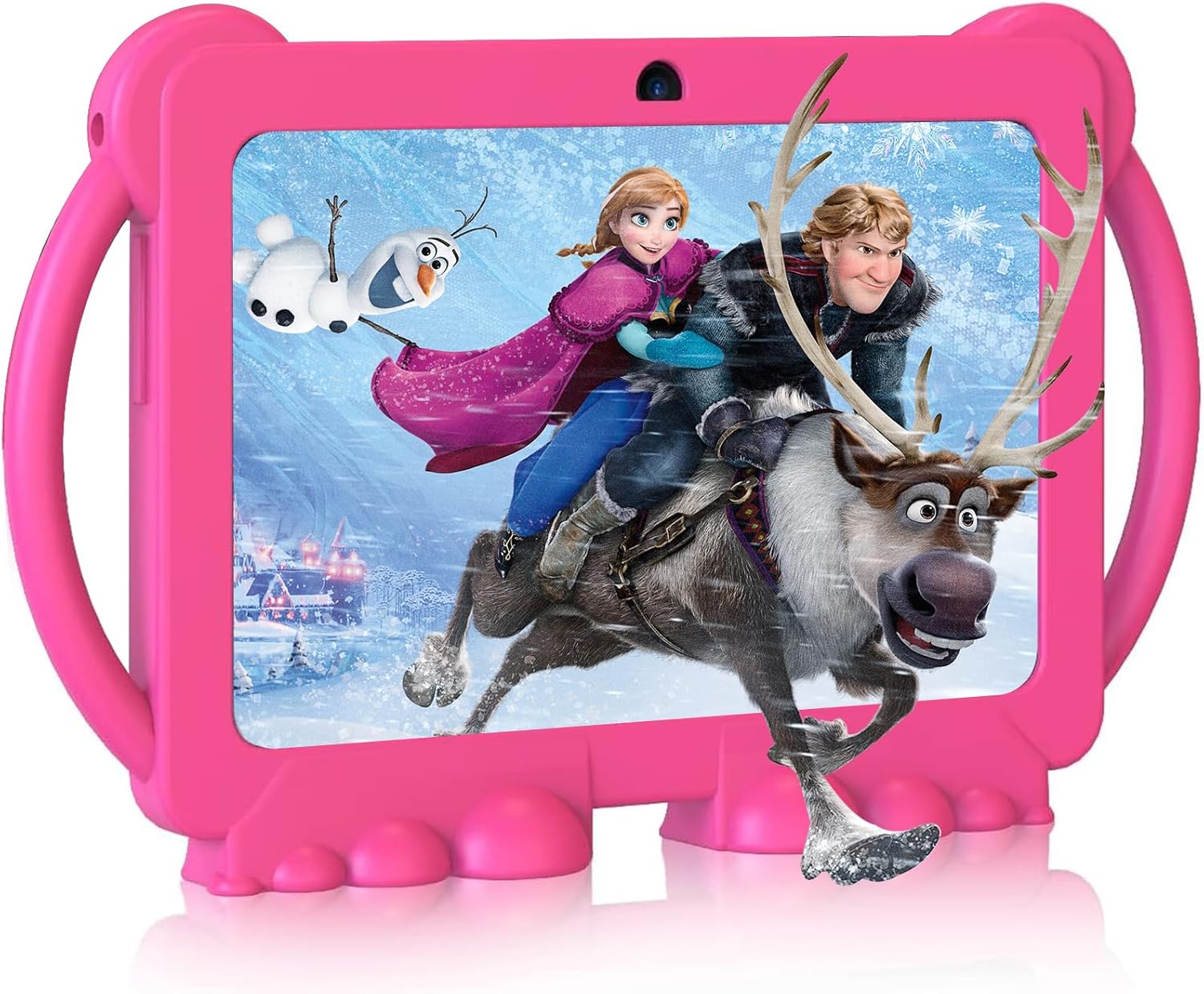 YOBANSE Kids Tablet, 7 inch Tablet for Kids 6GB RAM 32GB ROM Android 13 Toddler Tablet with Bluetooth, WiFi, Dual Camera, Children Tablet with Parental Control, Educational App(Pink)