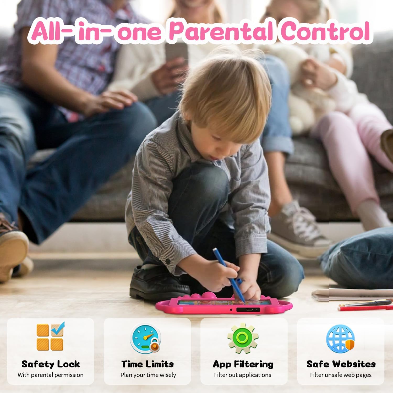 【Parental Controls】The Kids Tablet has parental controls that allow parents to restrict access to certain apps, games and websites. Parents can also set time limits and monitor their child’s usage to ensure a safe and controlled internet experience