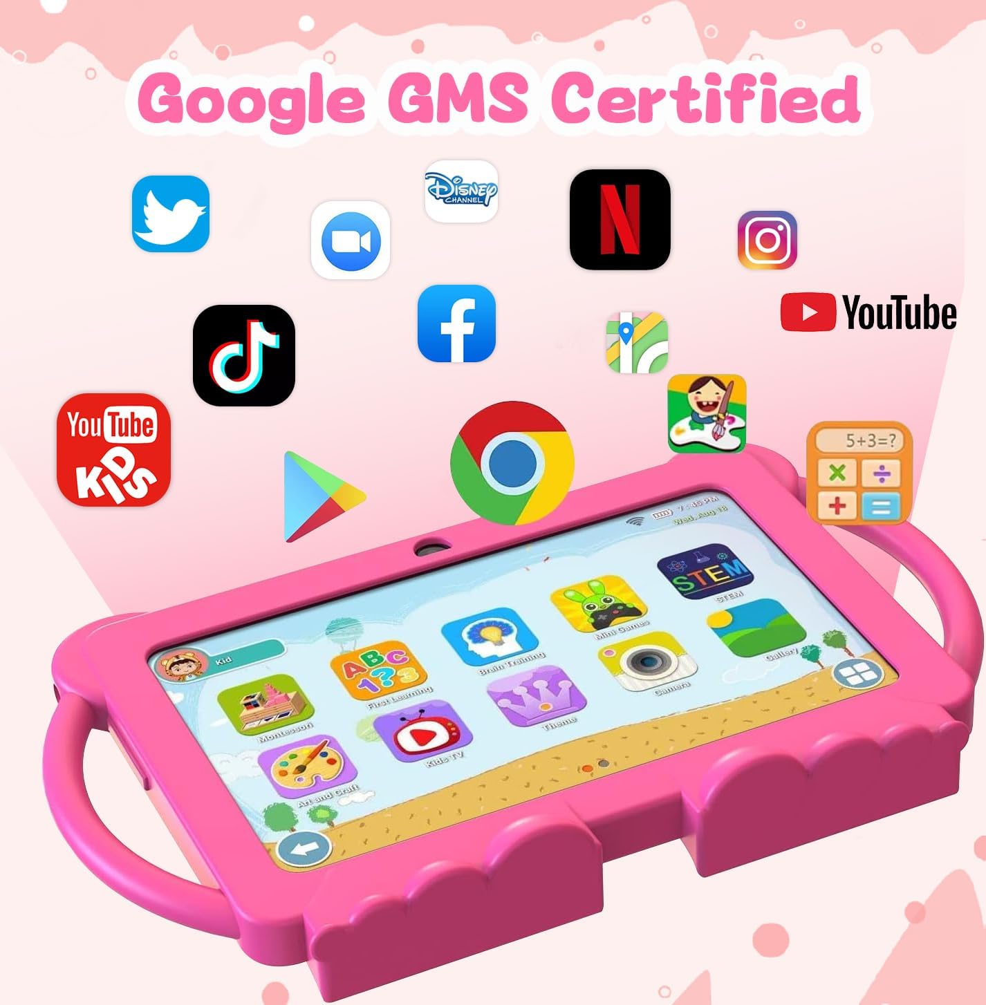 【Android13 + Google Certified】This kids tablet runs on the latest Android 13 operating system, the tablet is Google certified, ensuring compatibility with various Google services and applications such as Netflix, YouTube, Disney+…